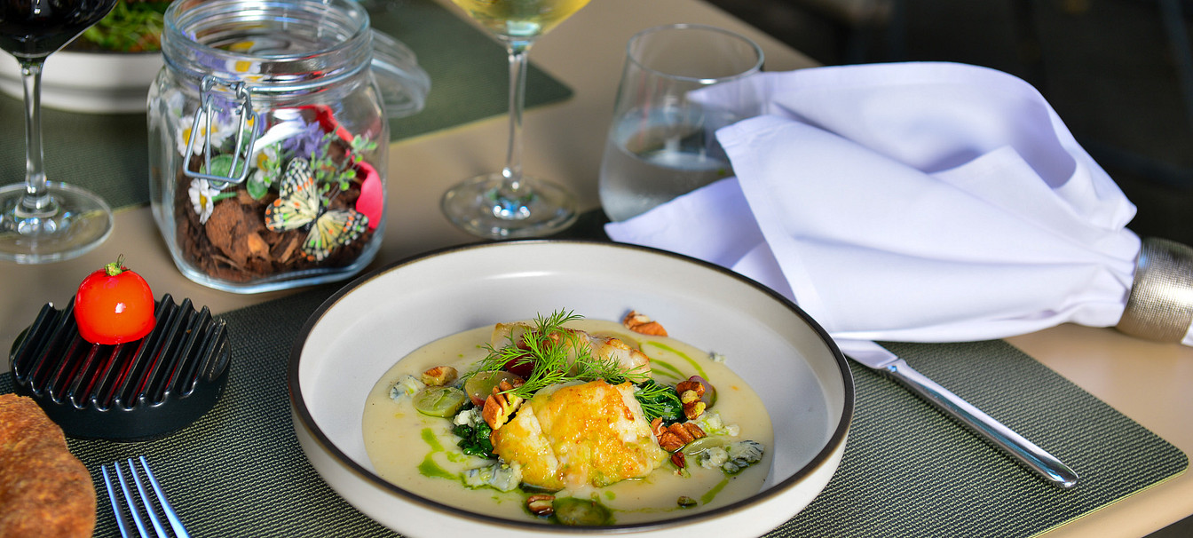 At aigu Restaurant, you’ll discover seasonal lunch menus and a creative à la carte selection inspired by Swiss classics with a touch of Southern France.