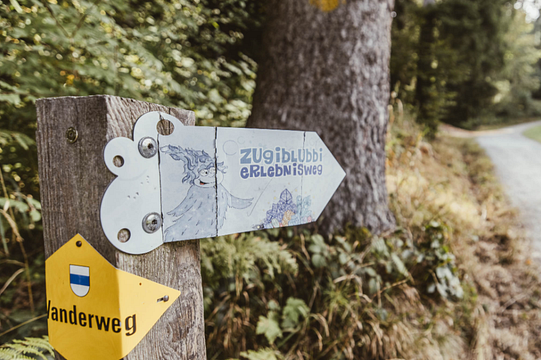 The Zugiblubbi adventure trail starts directly at the mountain station and consists of 8 game stations and 9 diamond stations. At each diamond post there is a letter which can be entered on the treasure hunt card. The completed treasure hunt cards can be posted in the letterbox at the Zugerberg Bahn mountain station and automatically take part in the next Zugiblubbi prize draw.