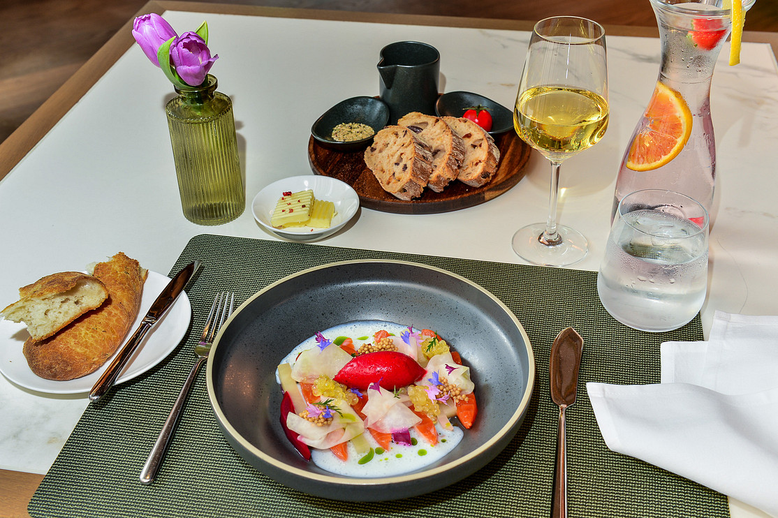 Une cuisine suisse avec un souffle du sud de la France – de saison, claire dans ses saveurs et avec cette touche bien aigu. Des classiques réconfortants aux créations véganes fraîches et inventives, chaque détail y pose un accent qui reste.